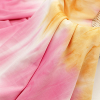 牛奶絲面料因其柔軟、滑爽的特性,非常適合用于扎染工藝。扎染工藝通過捆扎、染色等步驟,在面料上形成獨特的圖案和紋理。牛奶絲面料的著色性好,能夠保持鮮艷的顏色,使扎染作品更加生動、亮麗。在扎染過程中,牛奶絲面料能夠很好地吸收染料,呈現出豐富的色彩層次和紋理效果。