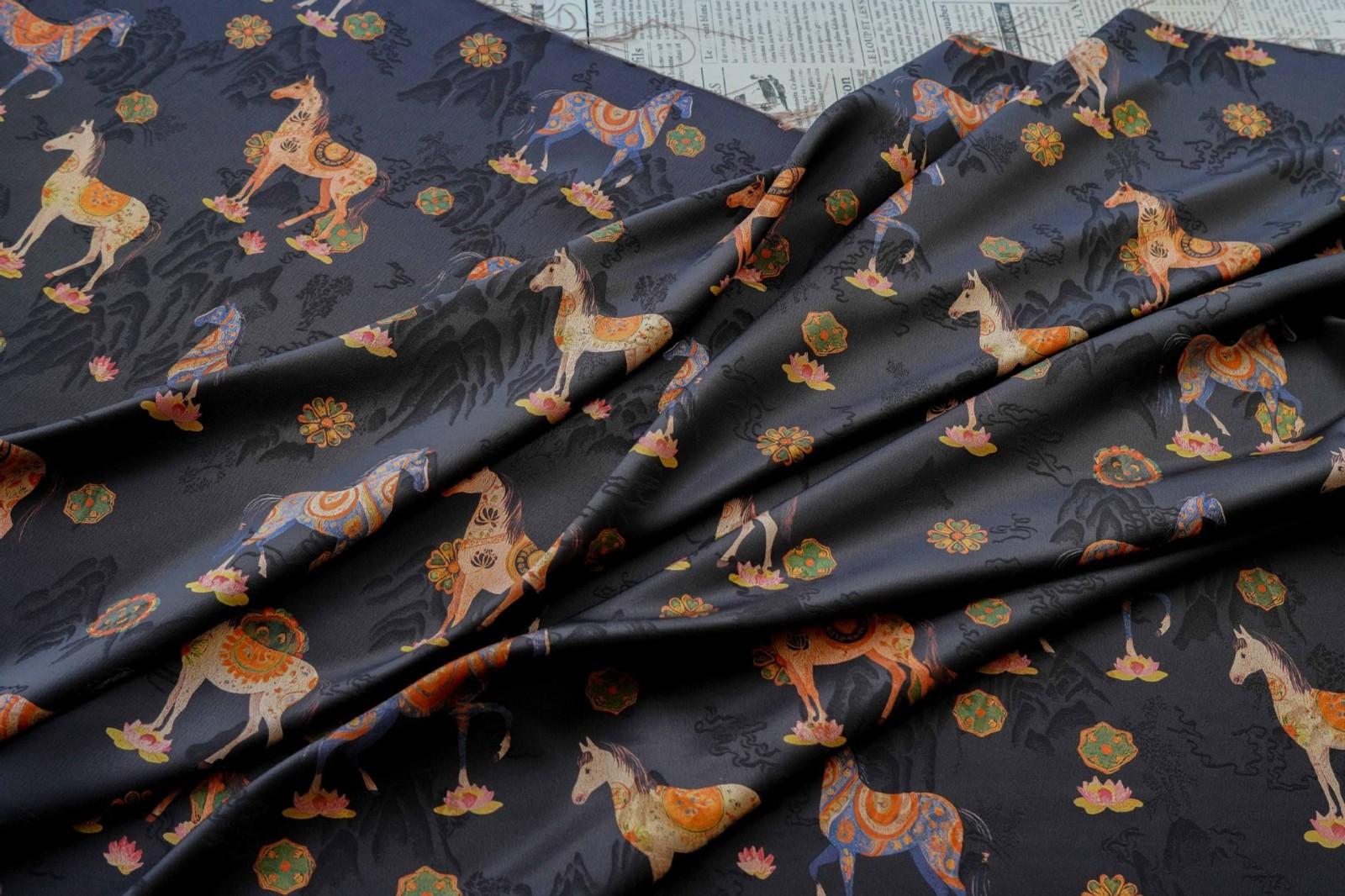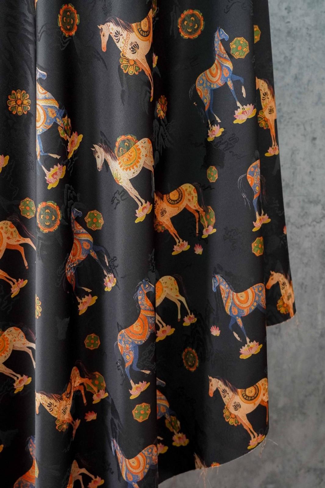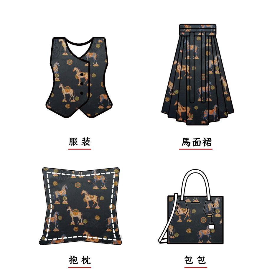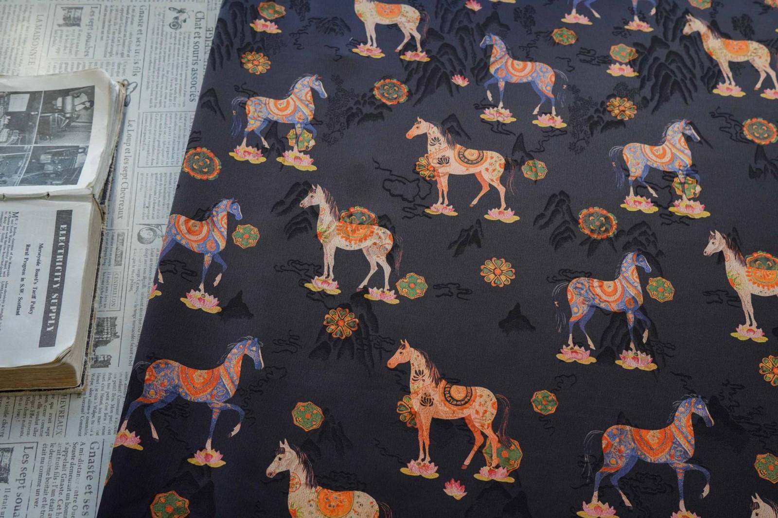駿馬馱金 天絲提花布料新中式國風漢服旗袍連衣裙面料手工diy面料