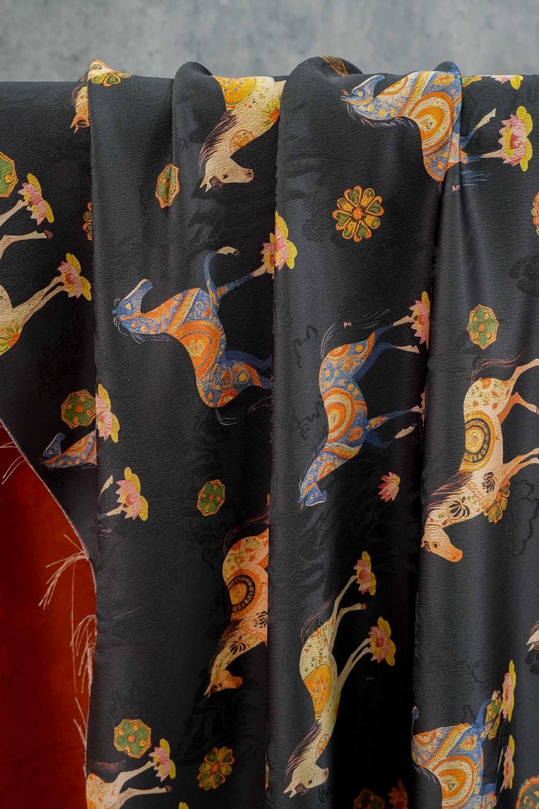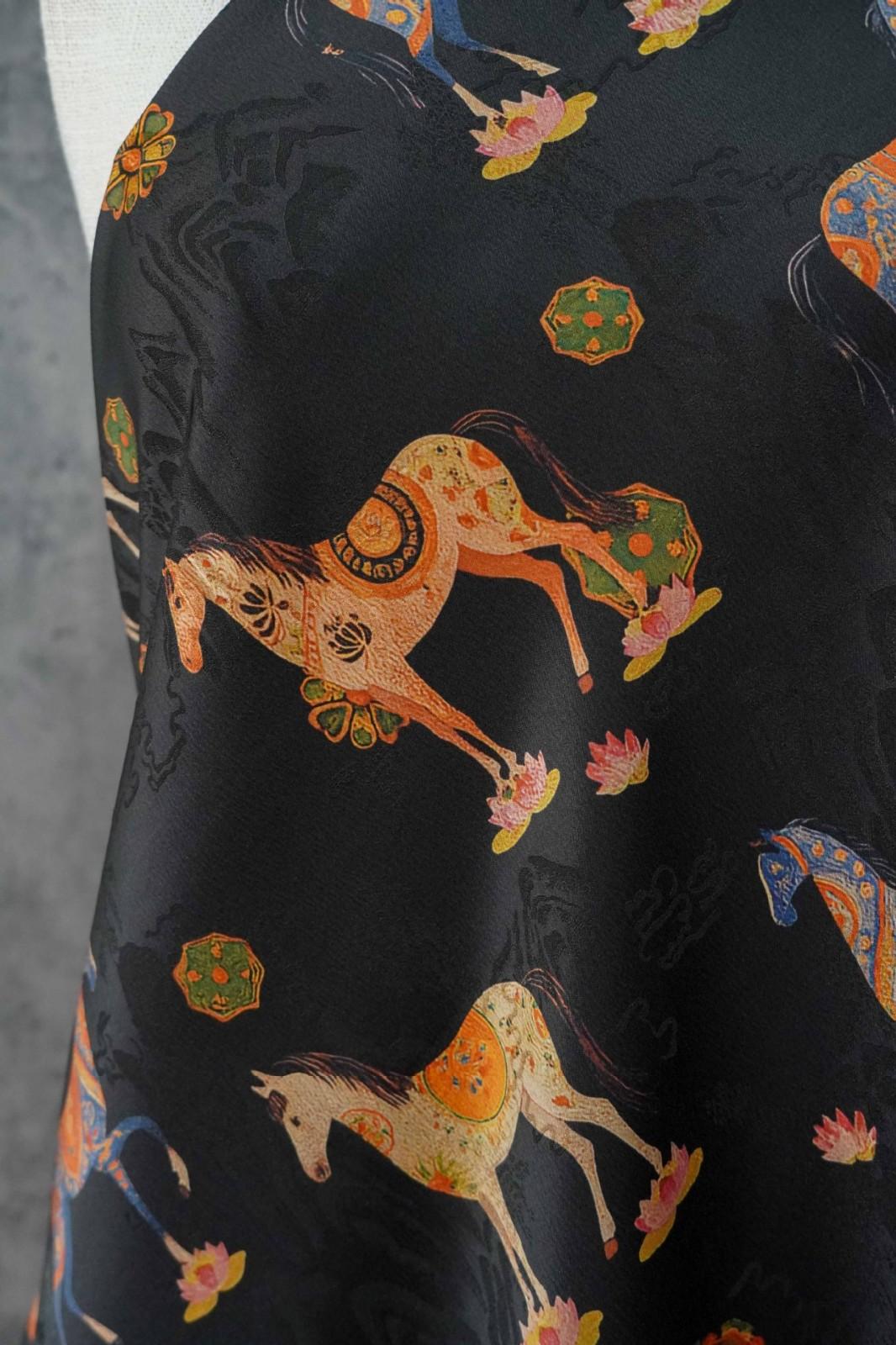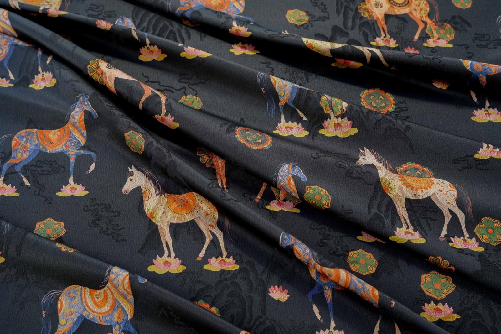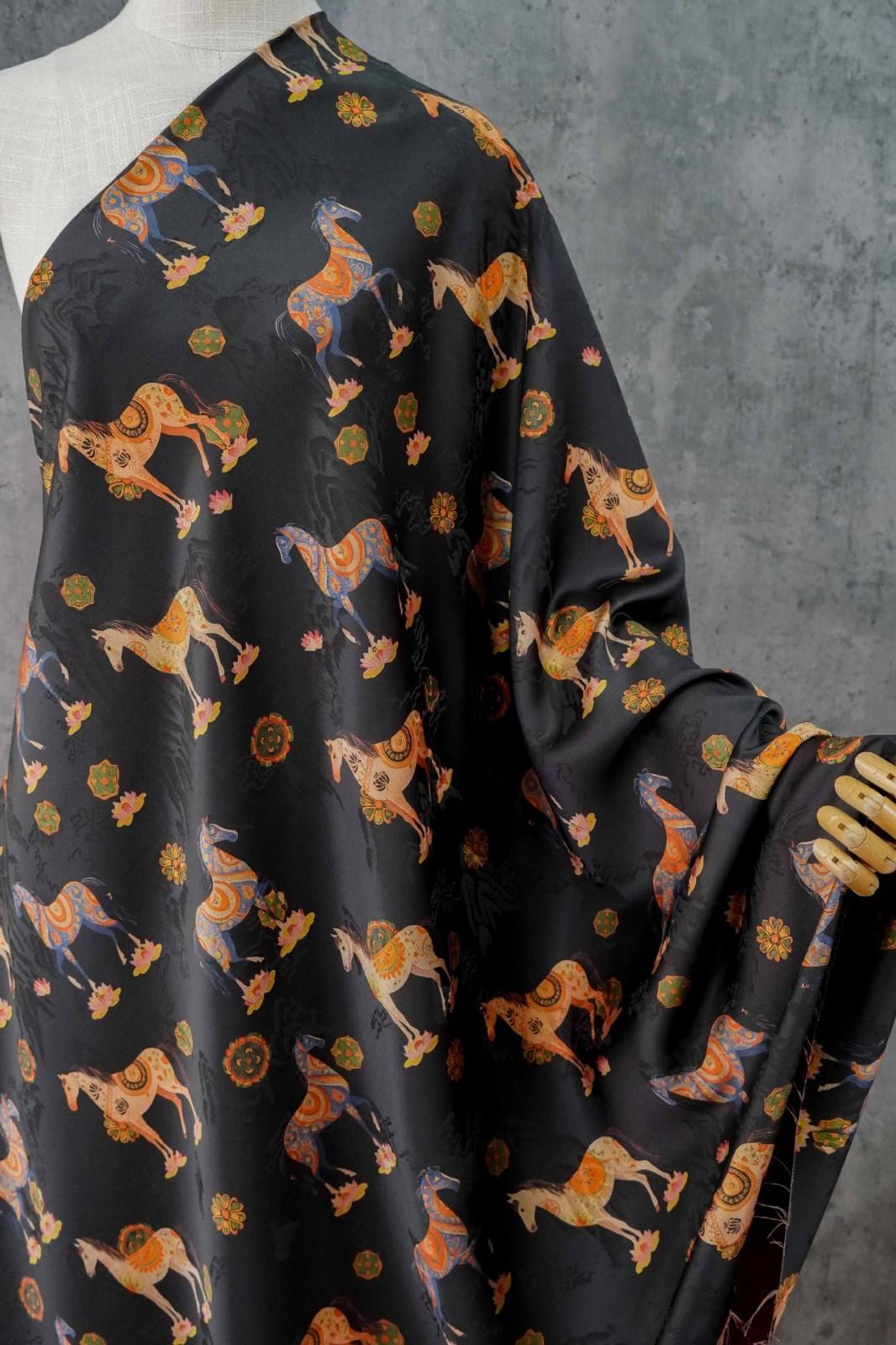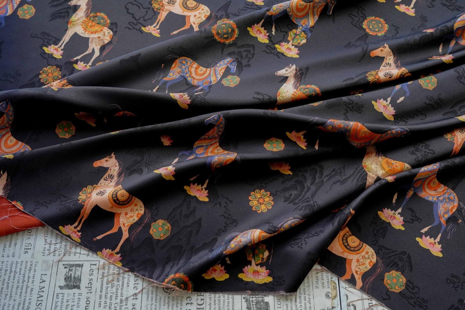 駿馬馱金 天絲提花布料新中式國風漢服旗袍連衣裙面料手工diy面料
