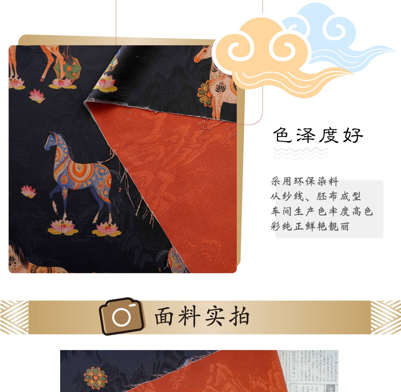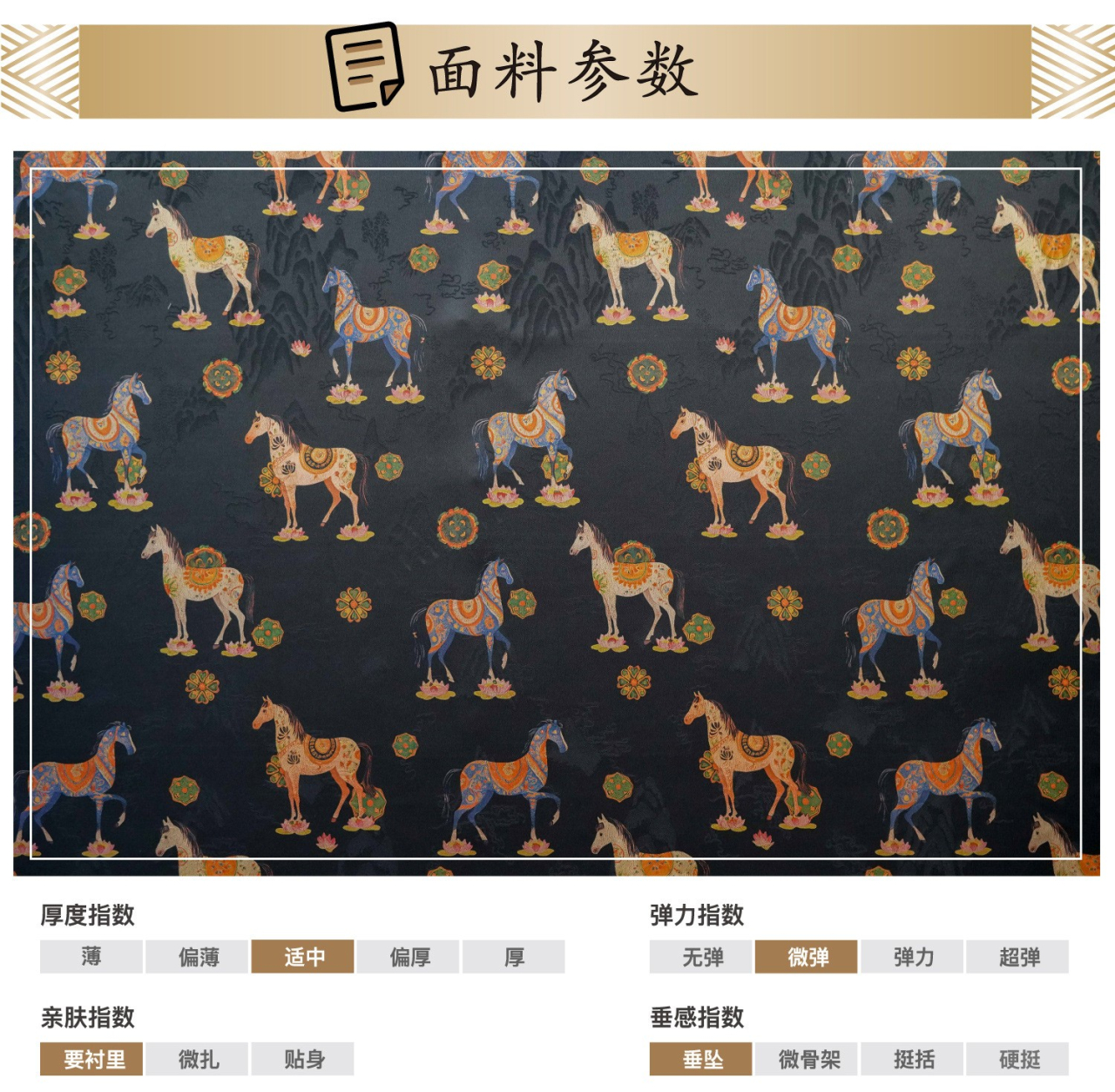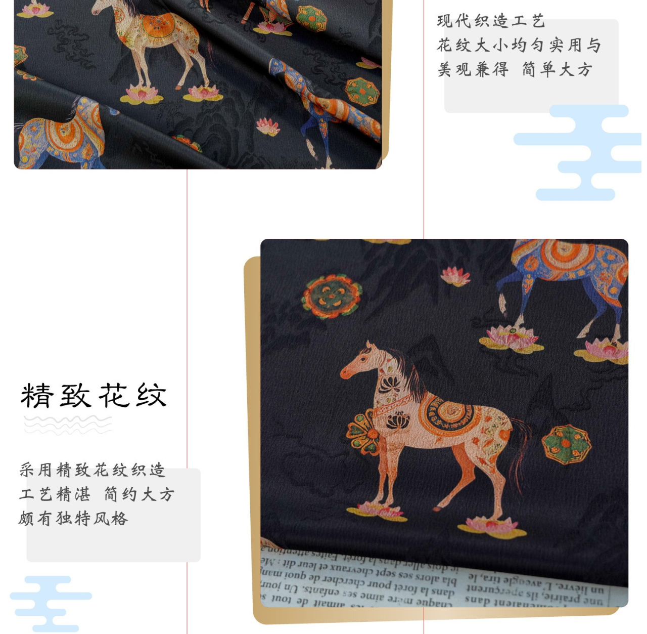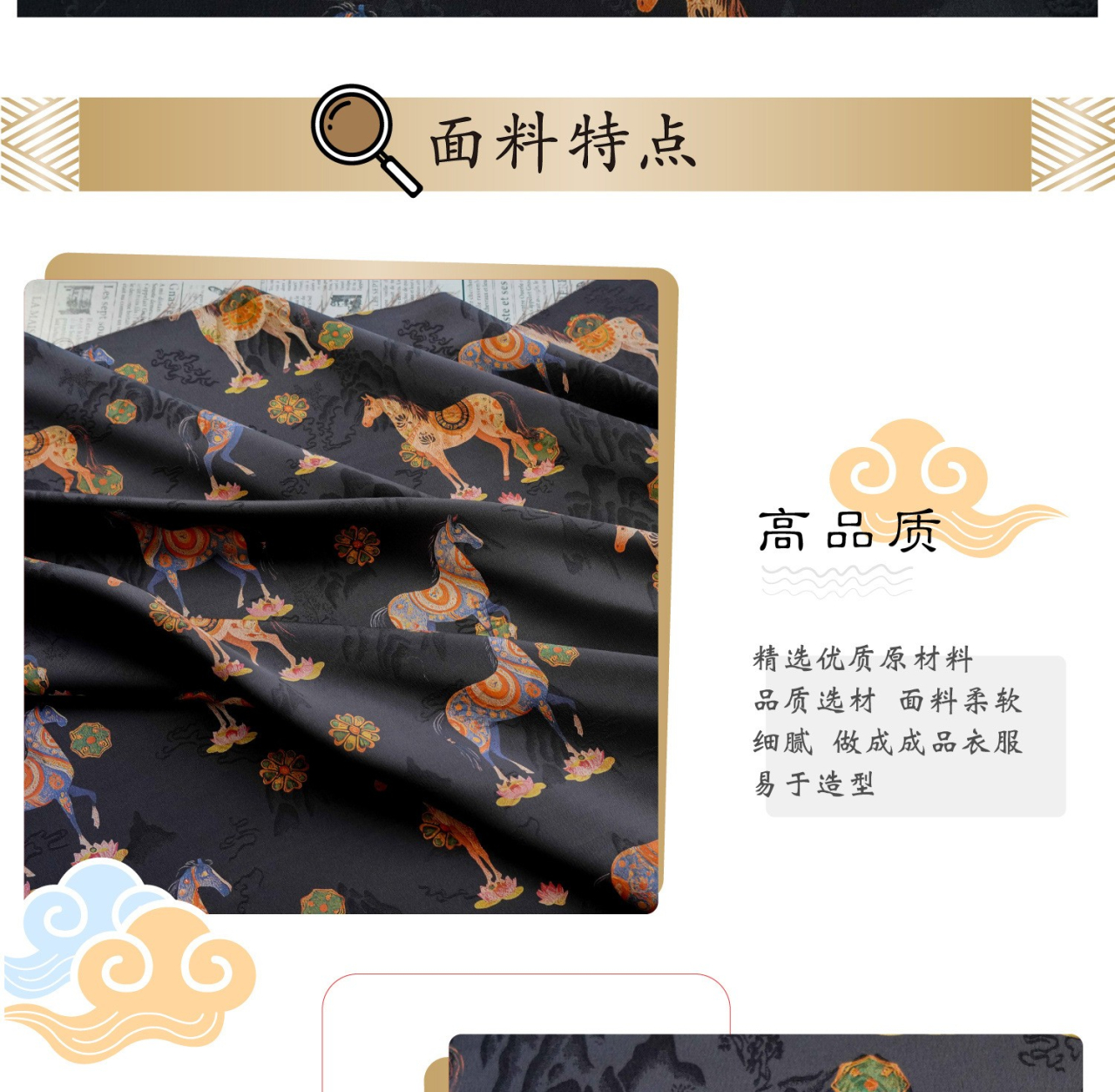 駿馬馱金 天絲提花布料新中式國風漢服旗袍連衣裙面料手工diy面料
