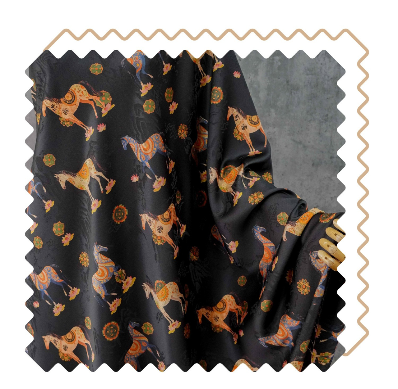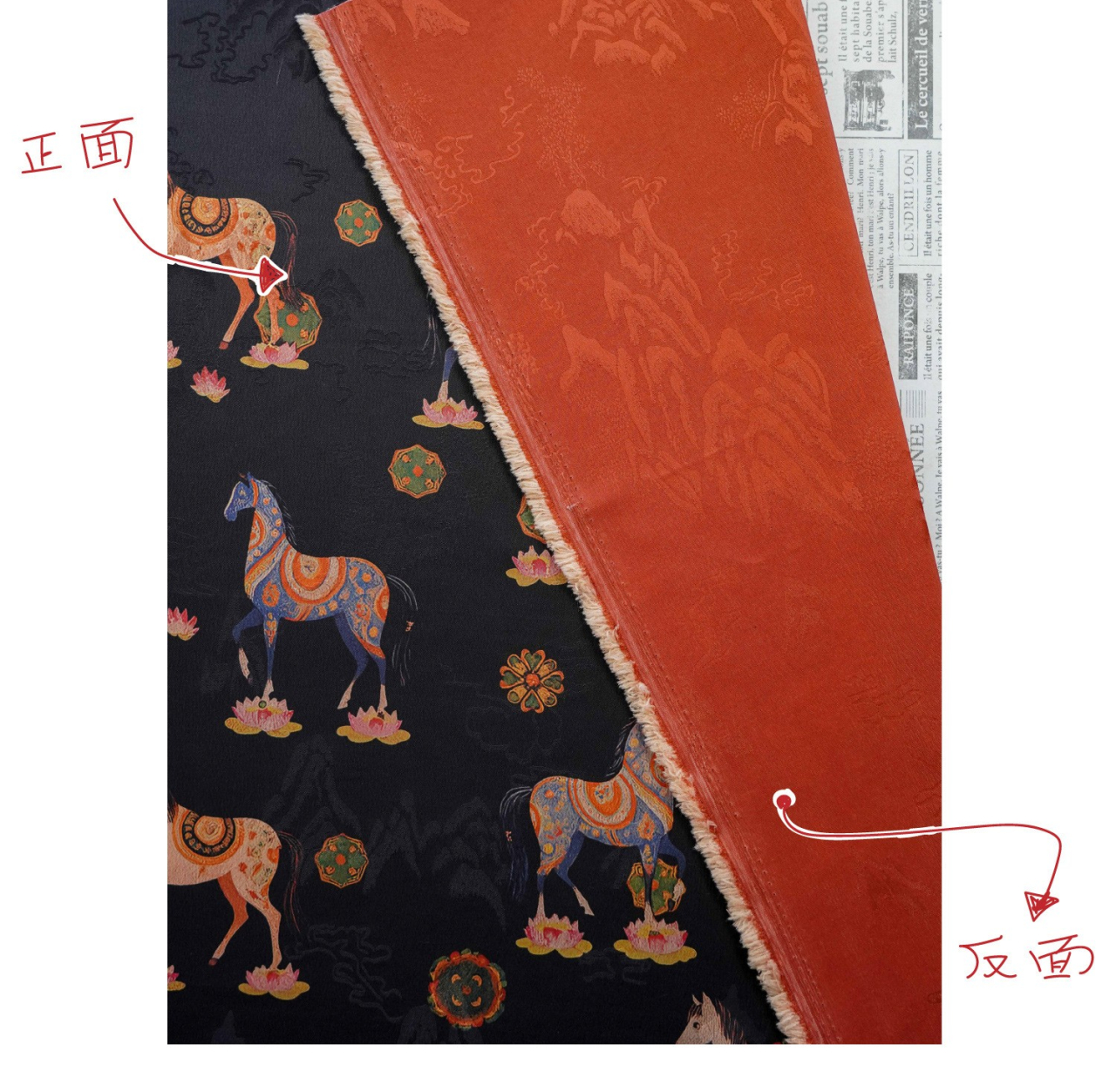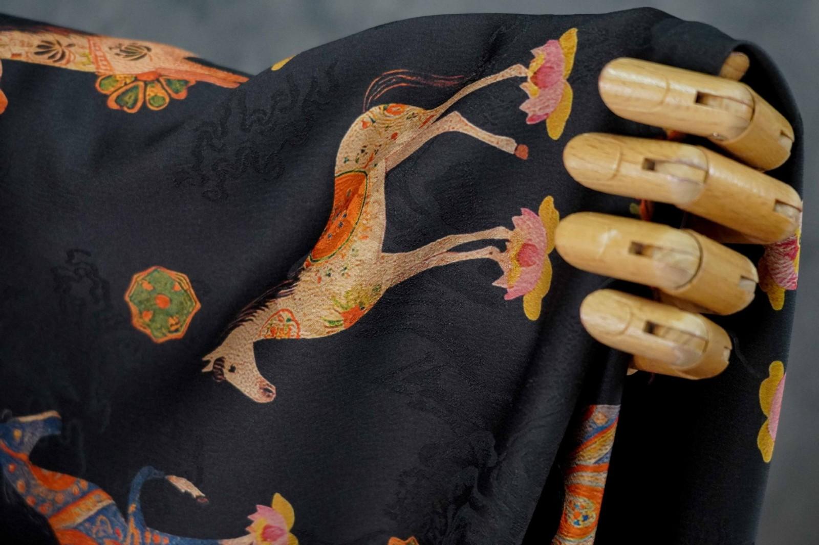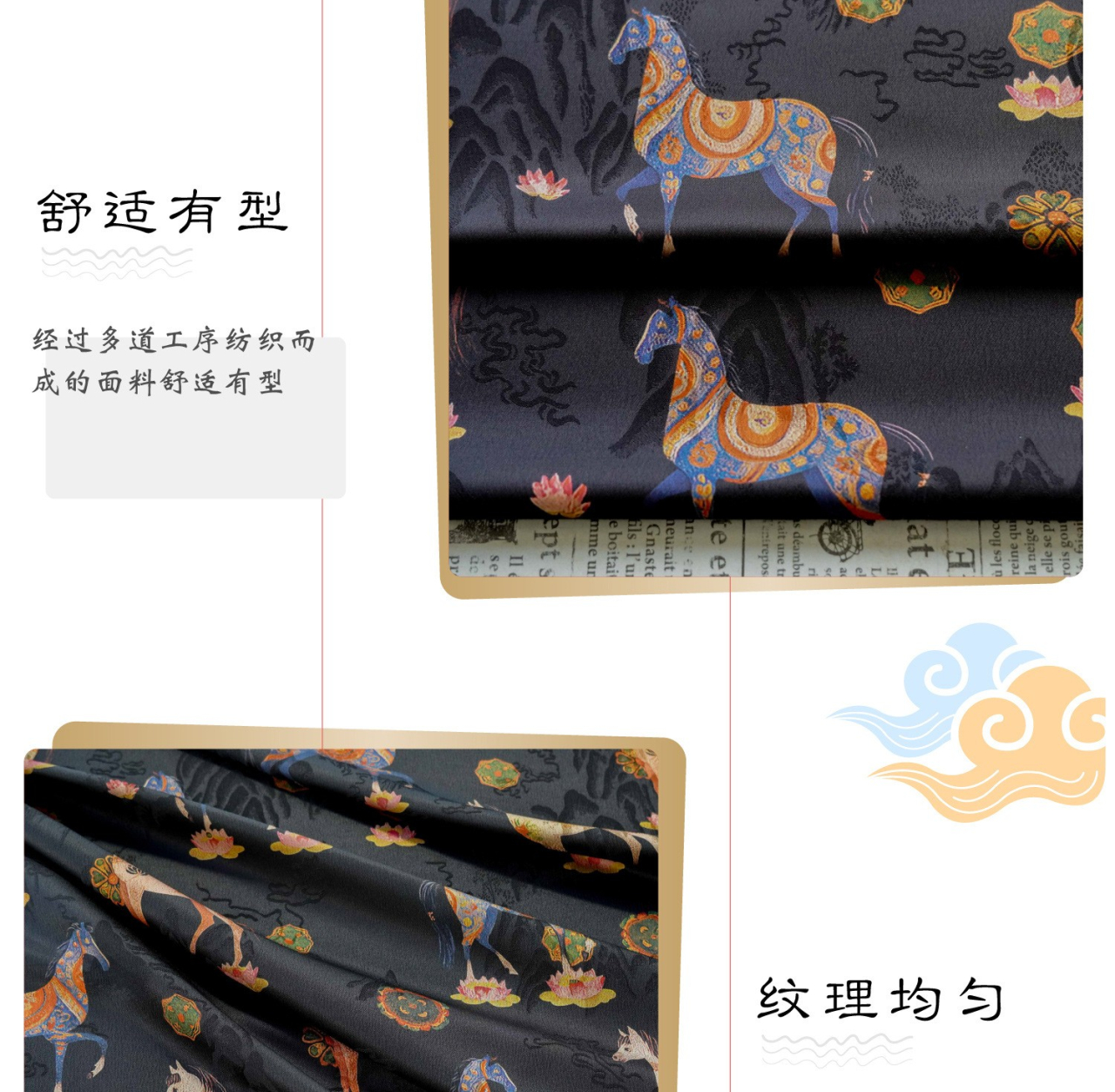 駿馬馱金 天絲提花布料新中式國風漢服旗袍連衣裙面料手工diy面料