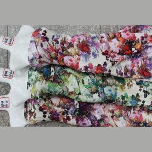 人造棉數碼印花面料,適用于時尚女裝、各類連衣裙等服裝。布面光潔、手感滑爽、柔軟、質地好、穿著舒適、穩定性好、品質優良。活性染料印花,色牢度高,色彩鮮艷,環保。幅寬、顏色、 花型和克重可根據您的要求定制。