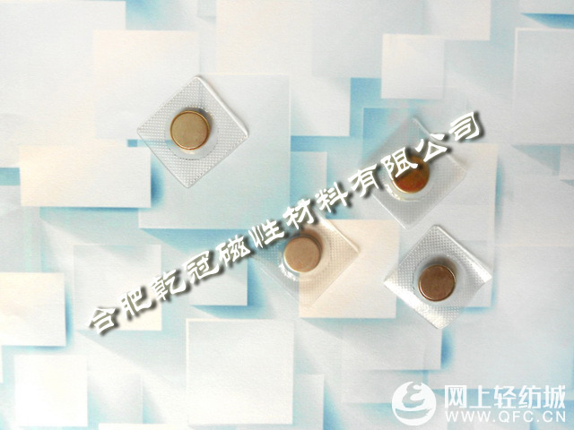 服裝磁扣是用兩個配對充磁的壓膜單面次組成。單面磁一面有磁性,另一面磁性較弱,是用鐵殼將雙面磁鐵的一面包裹,這樣被包裹的一面磁性將被屏蔽,磁力被折射到另一面,這樣能使服裝磁扣的使用面磁力更大,吸附力更強;單面次外表通過高頻壓燙了一層透明的PVC膜,更方便于安裝、縫合,而且具有超強的防水防銹能力。