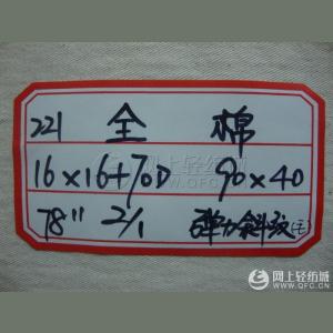 | 經紗紗支 | 16 | 緯紗紗支 | 16+70D |